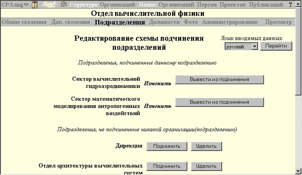 Рис. 2. Редактирование схемы подчинения подразделений
