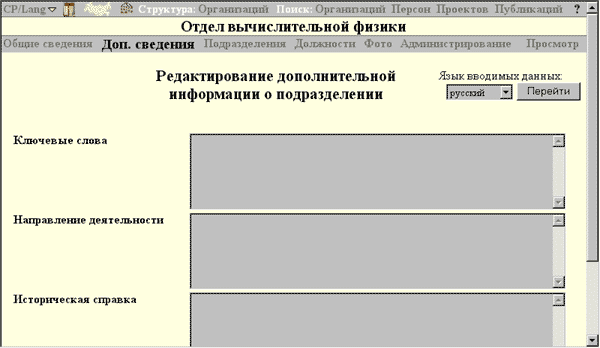 Рис. 1. Редактирование дополнительных сведений о подразделении