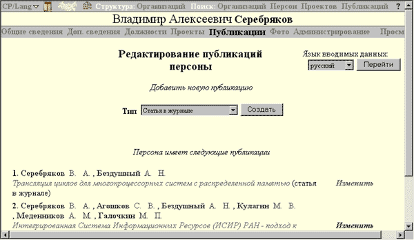 Рис. 1. Редактирование публикаций персоны