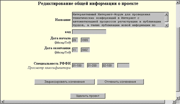 - Название - полное название проекта. Например: Интегрированная Система Информационных Ресурсов РАН.
