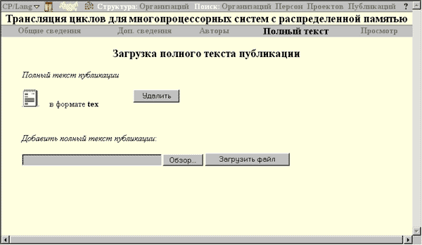 Раздел "Полный текст" (Рис. 1) позволяет загружать полный текст публикации.