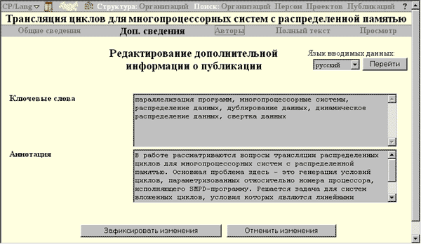 Рис. 1. Редактирование дополнительных сведений о публикации