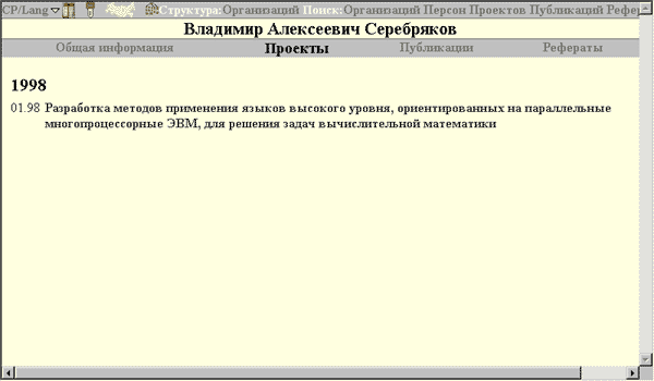 Рис. 1. Страница проектов персоны