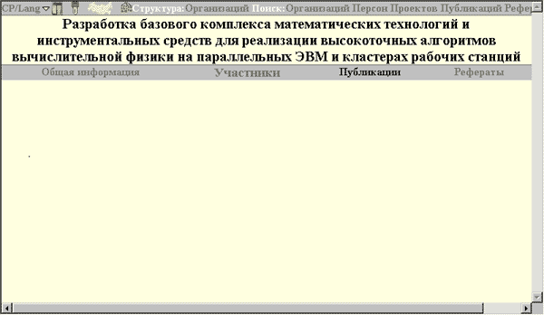 Последний, третий раздел (Рис. 1) представляет список публикаций, связанных с данным проектом. Список содержит информацию о публикациях: ссылку на страницу персоны и ссылку на собственно страницу публикации.